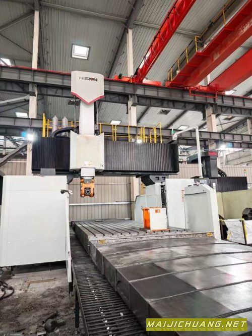 军工单位出品。海天五轴5米龙门,GNU重型系列,工作台2.5米*5米,门宽3.3米,门高1.8米,三轴线轨,BT50齿轮头,主轴6000转,三轴行程1250,三轴光栅尺,配一个全自动直角铣头,配一个钟摆式五轴头(A轴090度,C轴正负180度),40把链条式刀库,链条式排屑机,,发那科MFPlus系统。