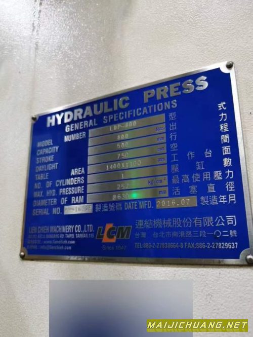 800T数控伺服液压机,快下500mm, 工作台,开口750mm,行程500mm,120kw伺服电机,无顶出,8面导轨,人机数控界面,适合预锻。详情看清单配置 信息编号:S471204 |