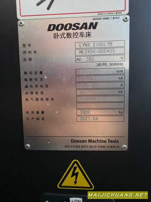 韩国原装斗山2100Ly车铣复合中心,8寸卡盘,带Y轴,带.