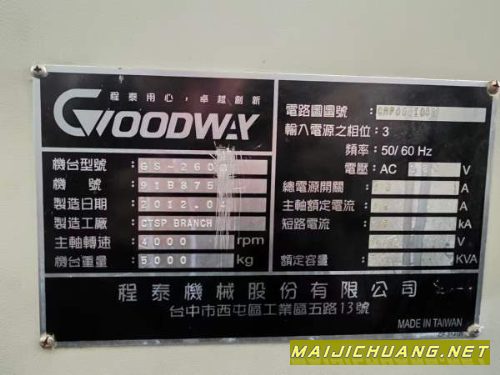 原装台湾进口程泰GS-260数控车床、10寸卡盘、伺服12工位大刀塔,皮带主轴4000转,两轴硬轨,行程X480 Z600 回转直径470、切削直径470,加工长度600,带尾座链式排削机。 信息编号:S861213 |