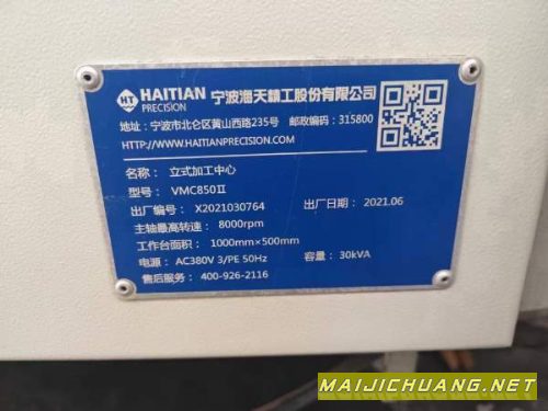 产品名称:海天850加工中心,只用900小时,2021年产,带排削机,. 产品型号: 产品品牌: 产品产地: 产品单价:议价 最小起订:1/0 发布日期:2026年02月10日 截止日期:2026年08月09日